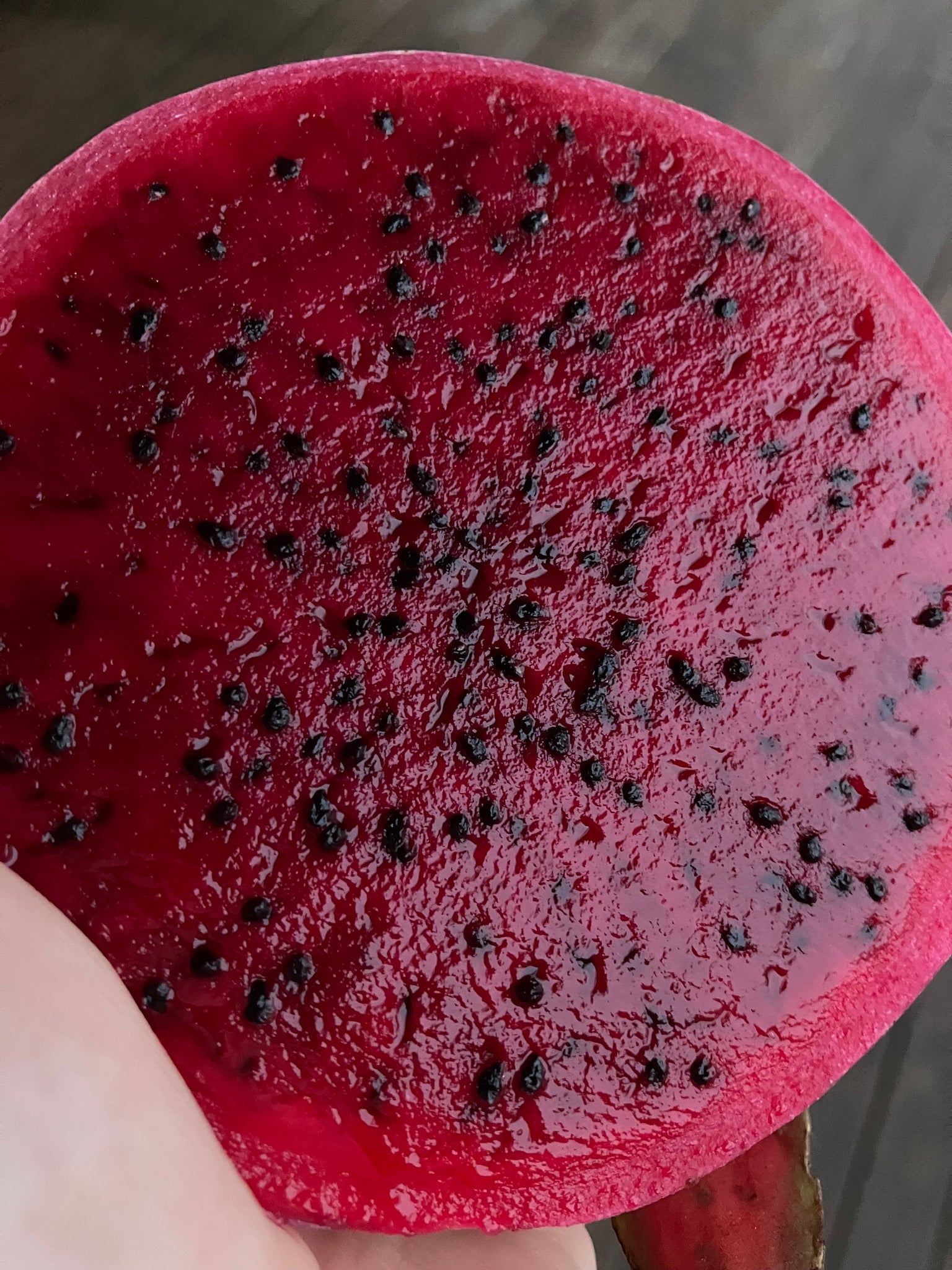 This is a self-pollinating variety that produces stunning red fruit with a bright reddish pink flesh containing tiny black edible seeds. It has a refreshing, mild sweetness and can be eaten fresh or used in a fruit salad, jellies, preserves or on a cheese platter.
