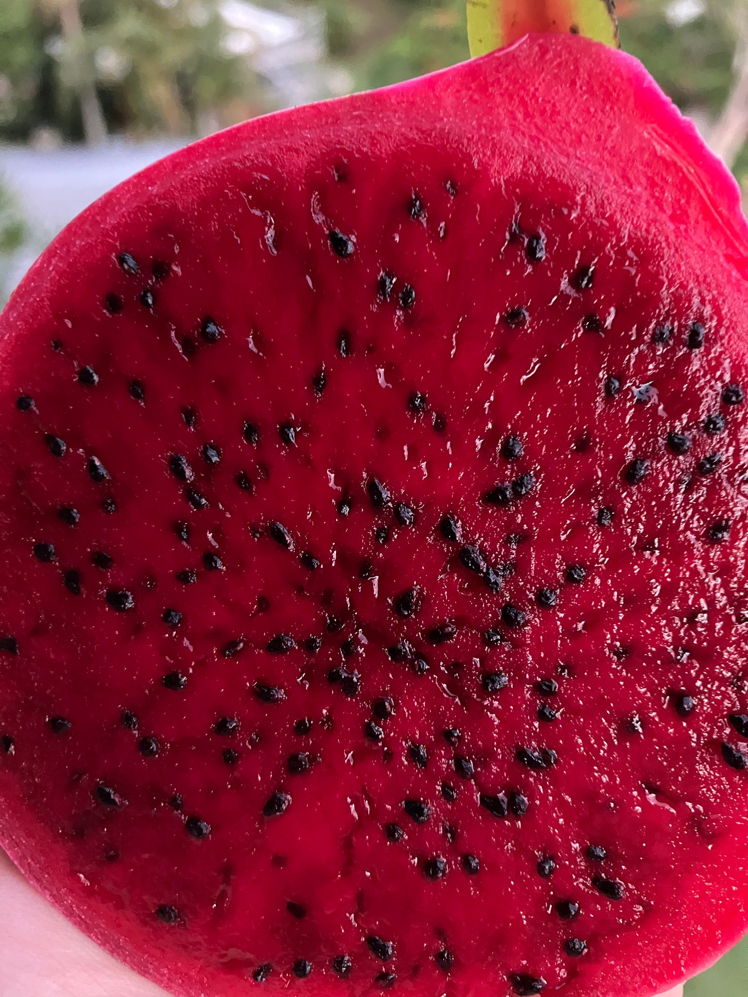 Did you know that the flowering and fruiting process of the Dragon Fruit is linked to the full moon rather than the seasons? The flowers bloom only at night - generally the night of the full moon - and are closed by mid-morning the following day. The cycle from pollination to picking is about 8-12 weeks and depending on weather conditions they can set fruit 3-4 times a year.